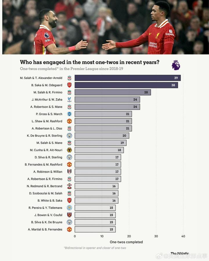 KAIYUN-近7赛季英超二过一配合榜:前十5对利物浦球员,第1萨拉赫+阿诺德