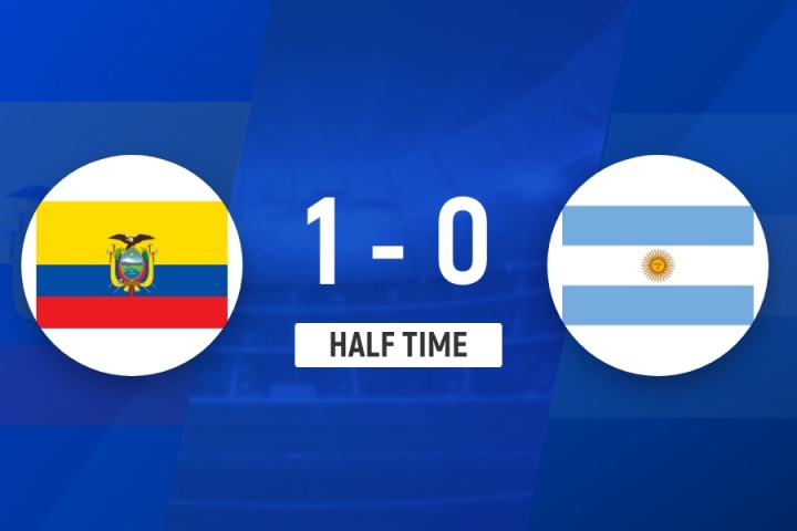 半场-十人阿根廷0-1厄瓜多尔 梅西缺阵奥塔门迪直红瓦伦西亚点射